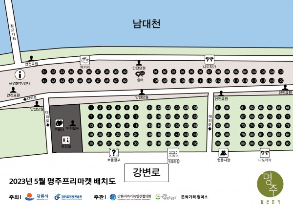 5월 명주프리마켓은 강릉남대천 단오터에서 오전 11시~오후5시까지 열립니다.